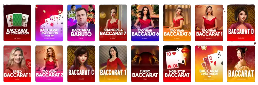 - Unterschiedliche Baccarat-Varianten wie Speed Baccarat oder No Commission.